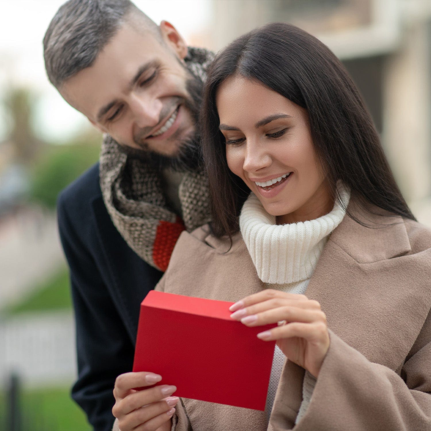 My wife loves the necklace. Unfortunately the box has a big chip in the front that appears to be touched up with nail polish. Not Good!